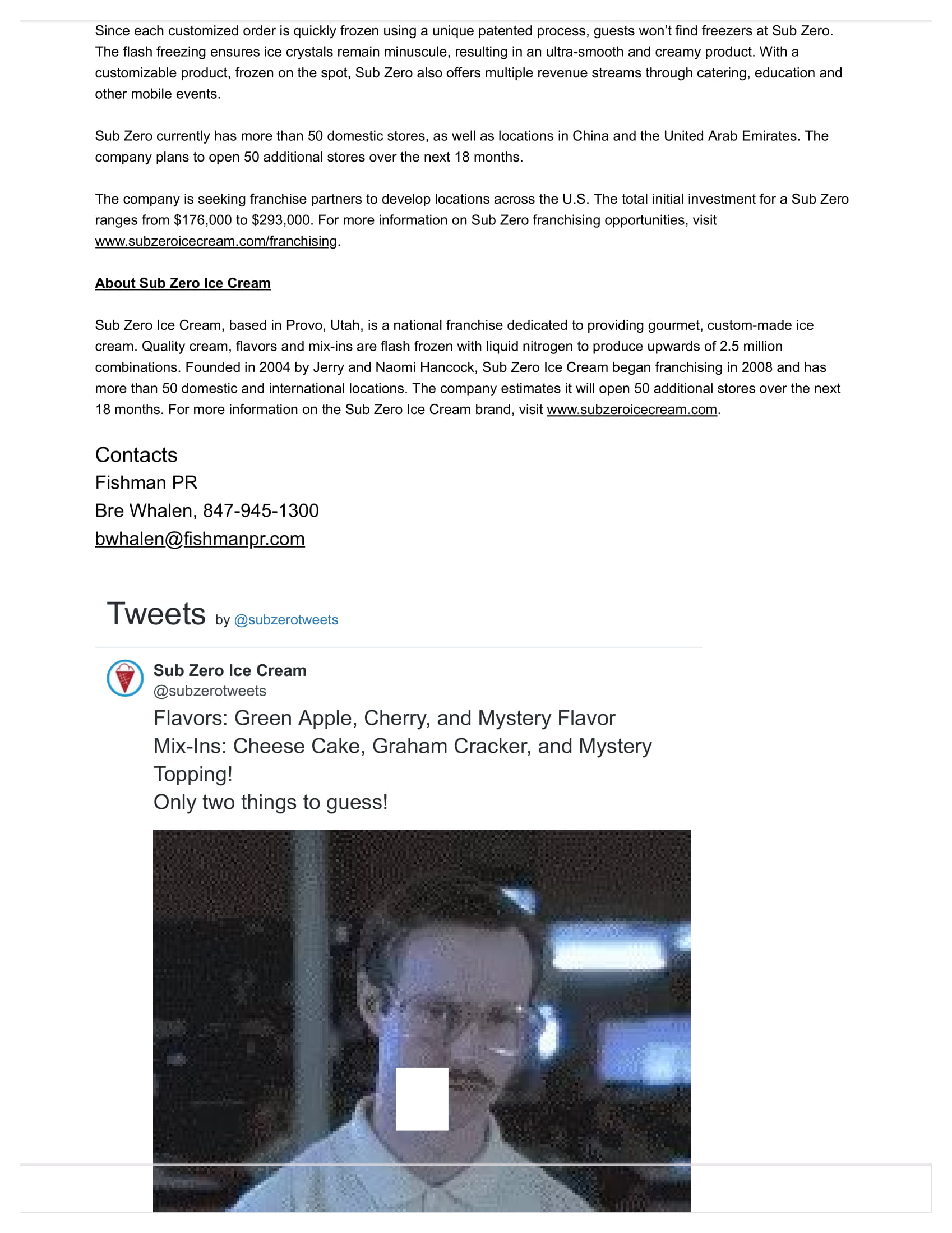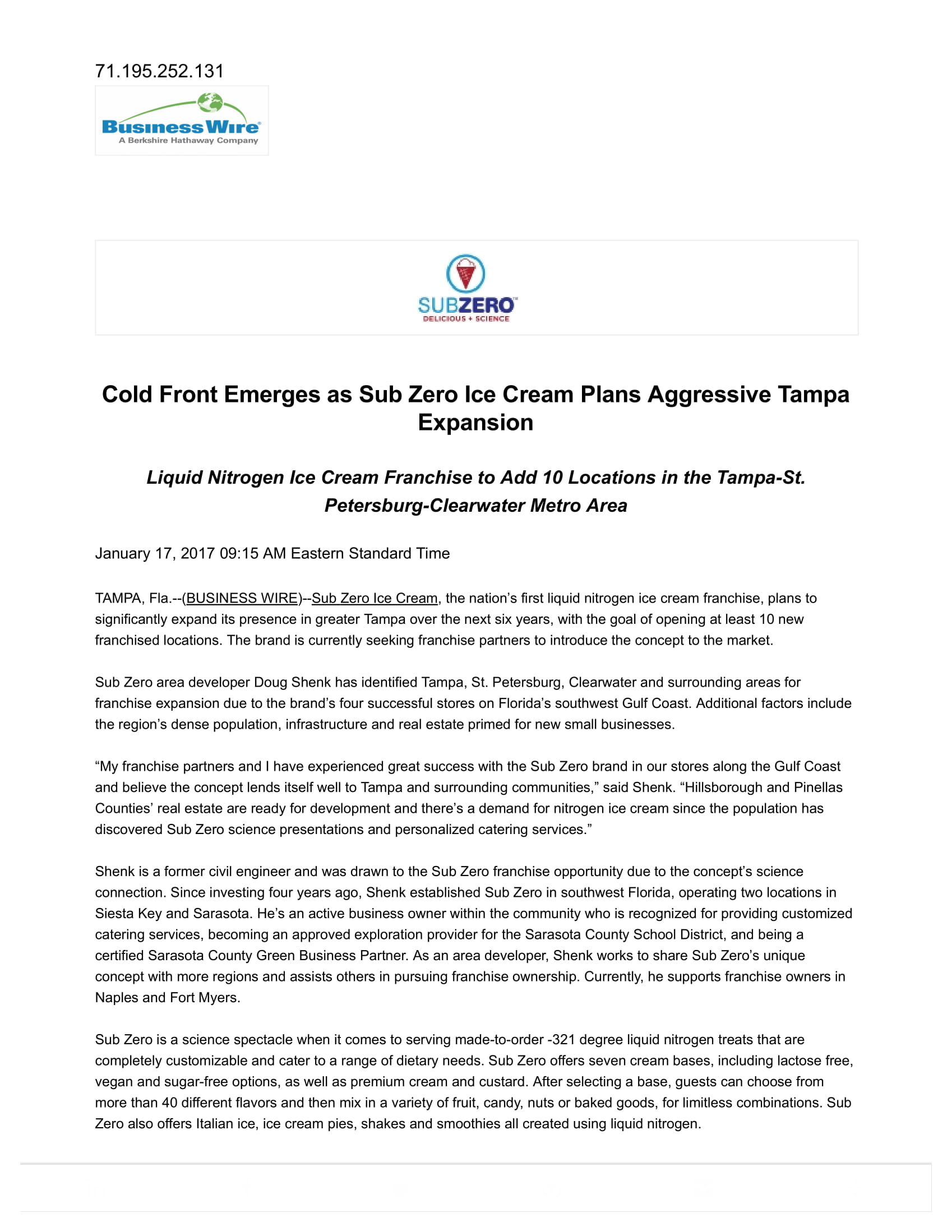 Cold Front Emerges as Sub Zero Ice Cream Plans Aggressive Tampa Expansion