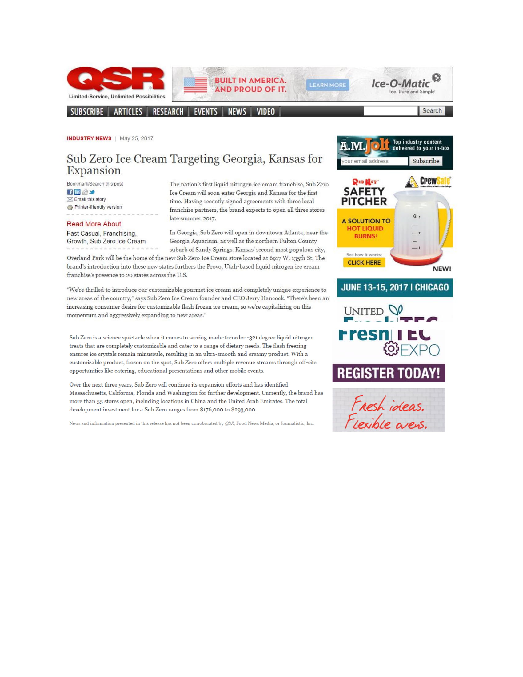 Sub Zero Ice Cream Targeting Georgia, Kansas for Expansion