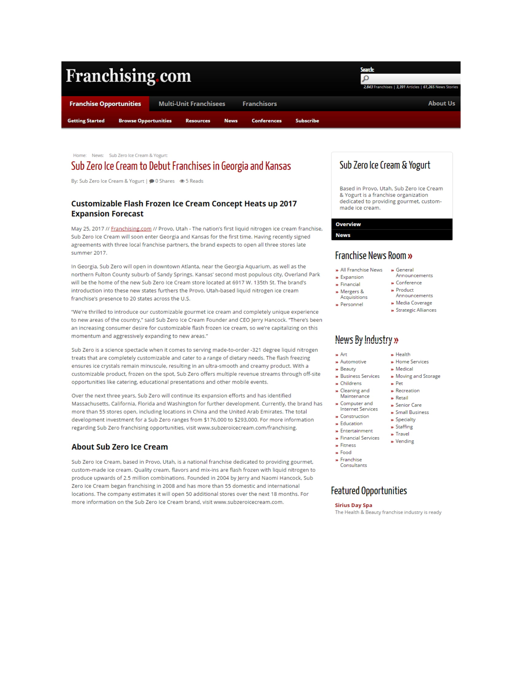 Sub Zero Ice Cream to Debut Franchises in Georgia and Kansas