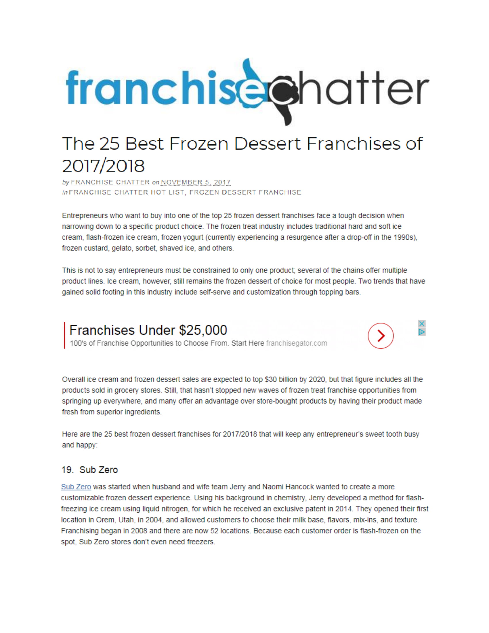 The 25 Best Frozen Dessert Franchises of 2017/2018